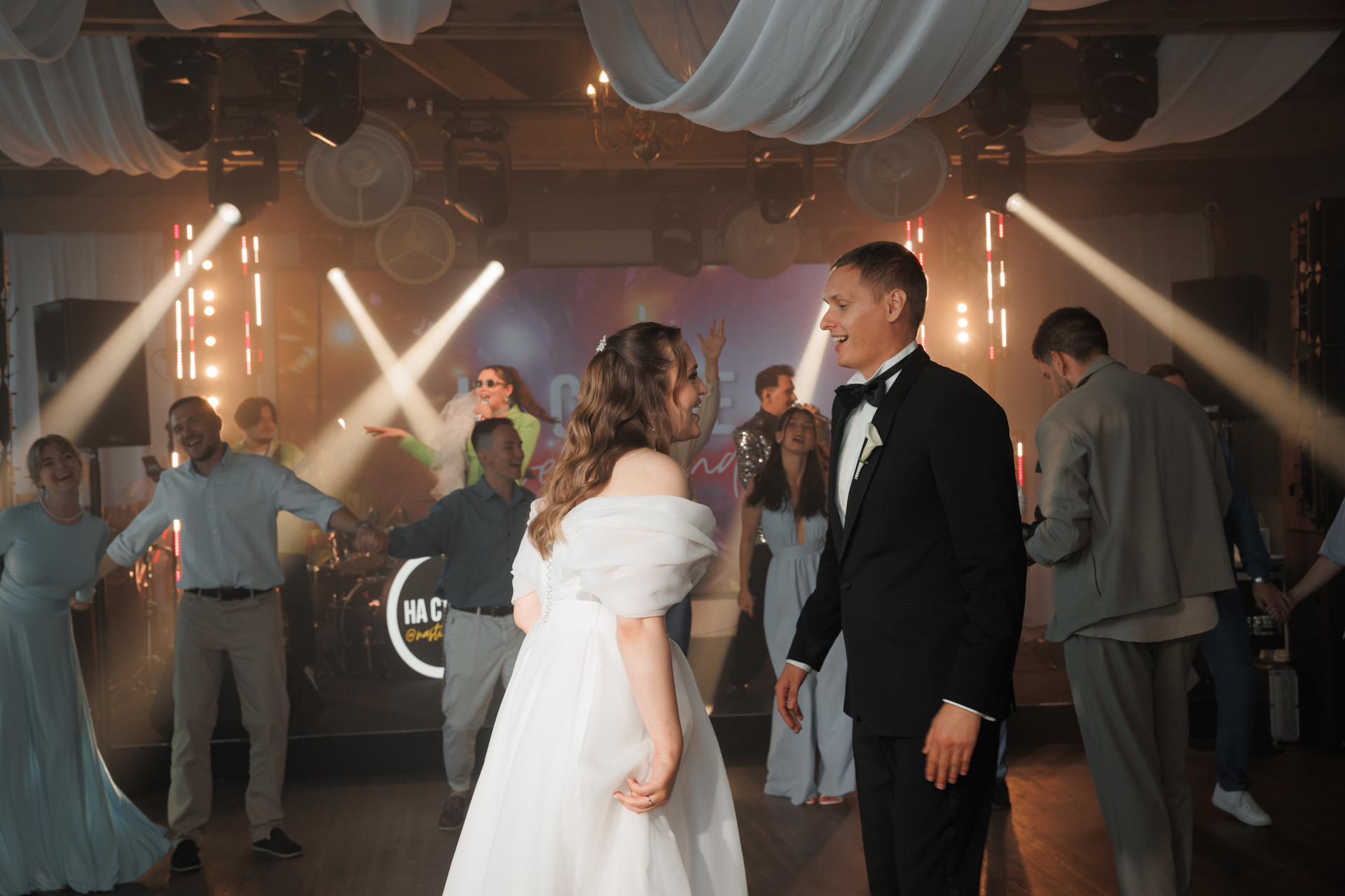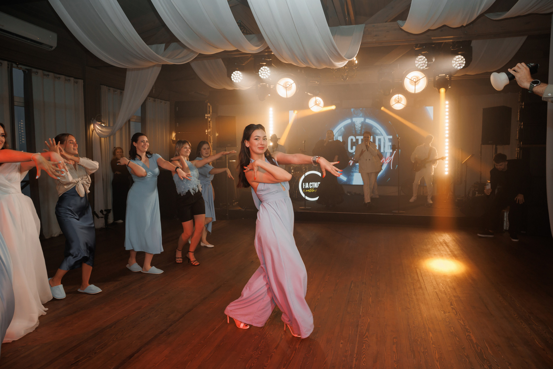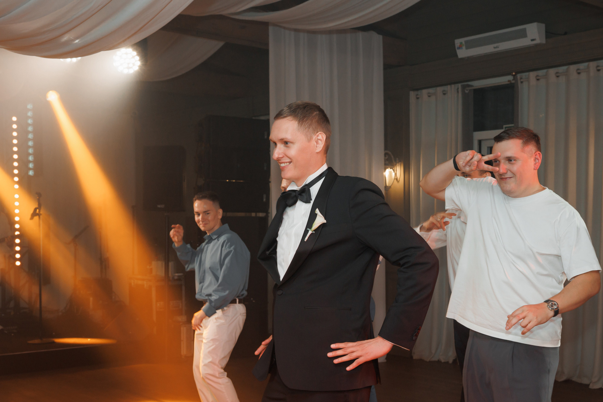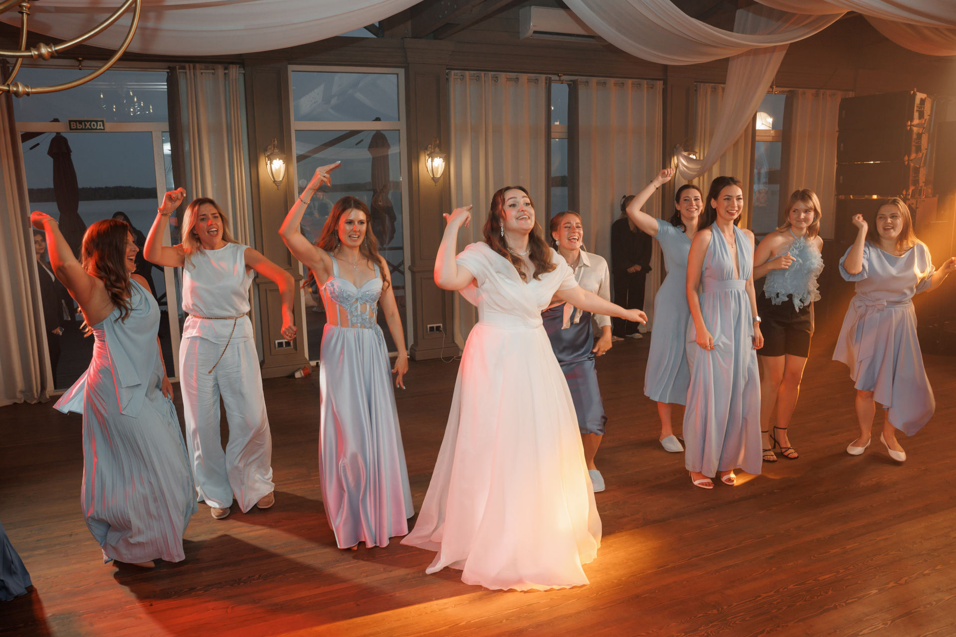 Сборы в отеле, прогулка пары по отелю, выездная регистрация, праздничный ужин и танцы с кавер-группой «На стиле»